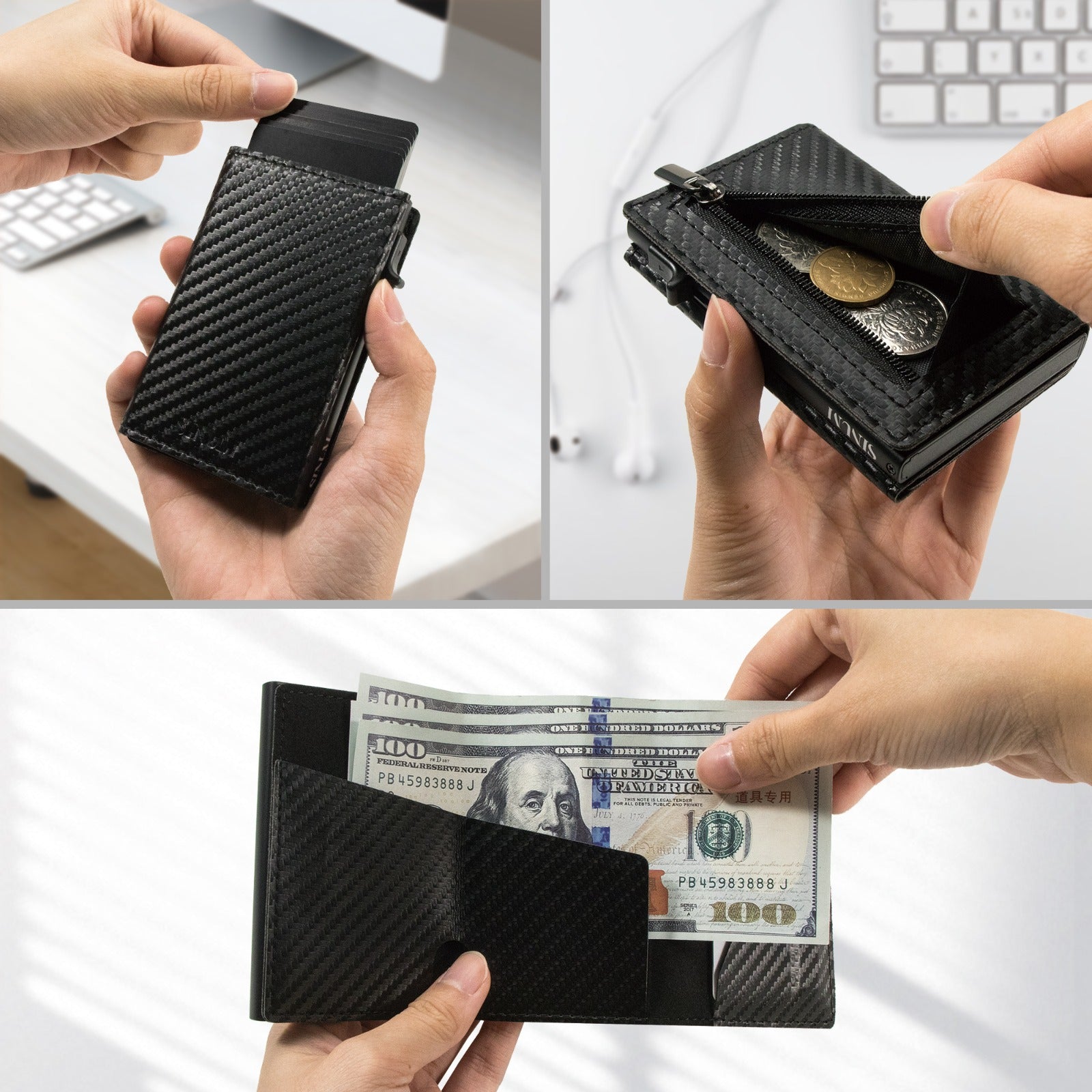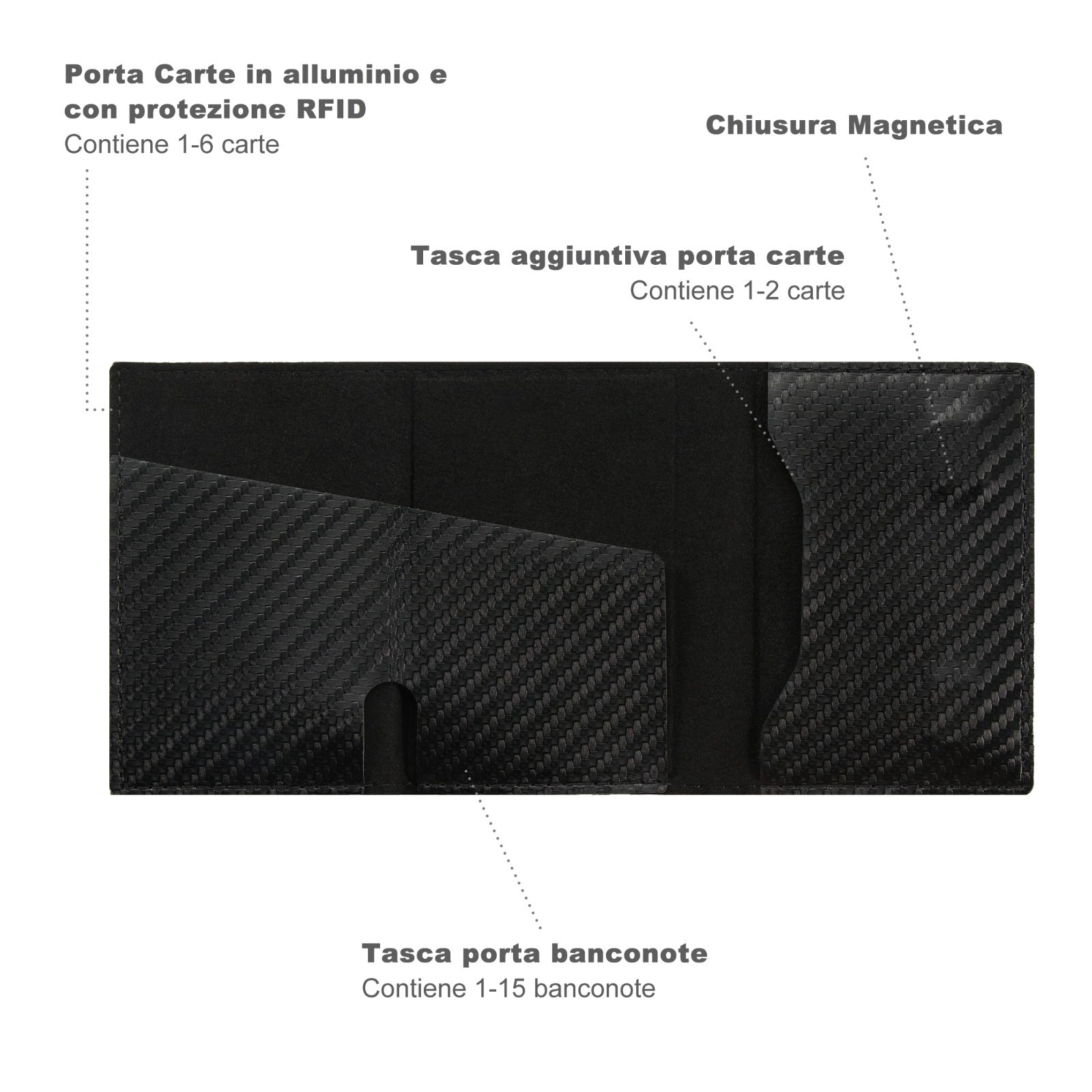 Con 1 tasca interna e la cassa in alluminio porta carte (con protezione RFID) potrai portare le banconote e le carte sempre con te!