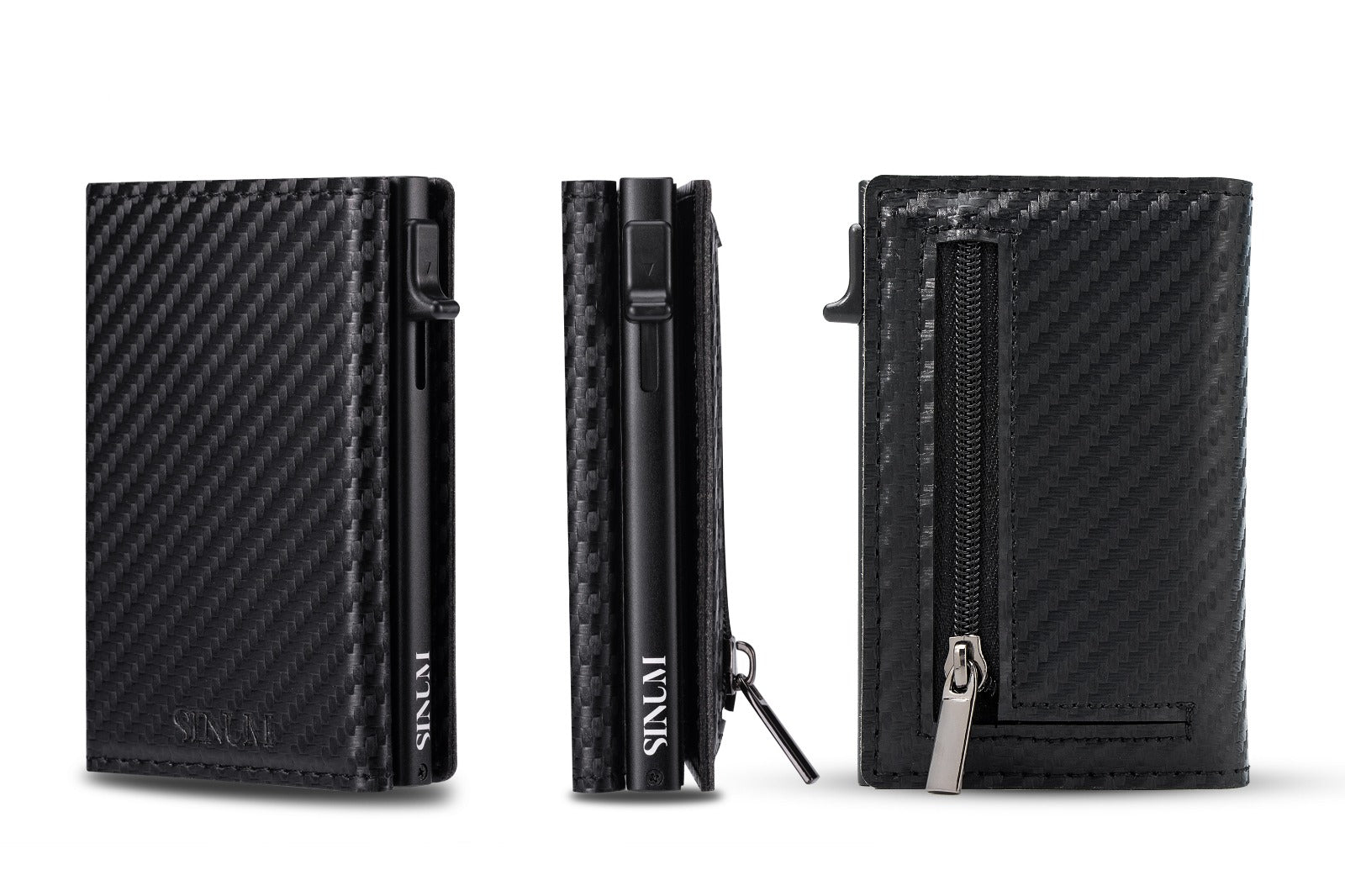 Dai un tocco di stile al tuo quotidiano con questo portafoglio in materiale effetto carbonio! Super resistente e incredibilmente trendy, è l’accessorio perfetto per chi non vuole passare inosservato. Resistente e leggero, senza utilizzo di pelle animale. Un look sempre impeccabile.